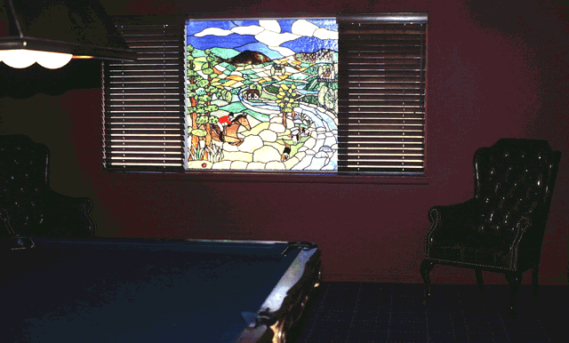 1379mc.gif Mary Ann Celinder Celinder's Glass 21341 Fleet Lane Huntington Beach, CA 92646 USA ( 714 ) 962 - 8361 Fax: (714) 963-6063 call first Email: 74553.1675@compuserve.com Member, IGGA "The Hunt," 1994. 45"x 43". Residential game room, Vic Turner/ Steve Dringenberg Residence. Photograph by the artist. |