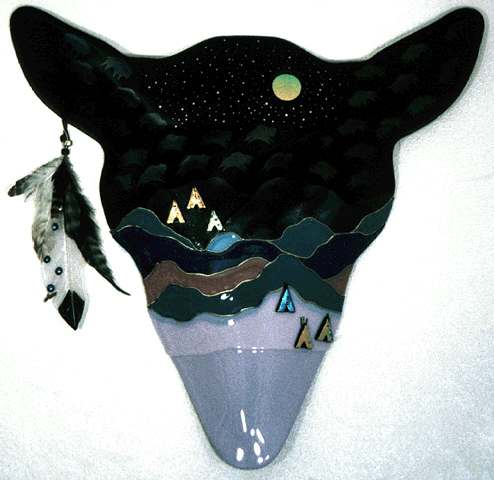 Avery Anderson Anderson Glass Works HC33 - Box 61N Arrowsic, ME 04530 9400 USA ( 207 ) 443 - 4157 Fax: (207) 443-4331 Email: glassart@ime.net http://www.igga.org/averya Member, IGGA "The Return," Animal Medicine Series #4, 1995. 20"x 20"x 2.5". Fused, slumped glass. |