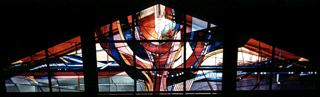 Leone McNeil Lead & Light Works PO Box 552 Mendocino, CA 95460 USA ( 707 ) 937 - 5227 Fax: (707) 937-5227 Untitled, 1989. 5'x 24'. Fort Bragg Presbyterian Church. Ed Sue, Architect. Photographer: Jess Shirley. Prototype for a section of window for Life Center Building, San Francisco, California. |